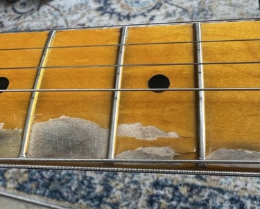 Please do not ask us to try polish those fret ends. There is nothing that anyone can do, other than a full refret, to fix this problem. So, if you know that your guitar neck has this problem, you will know in advance that the only service option is a full refret.